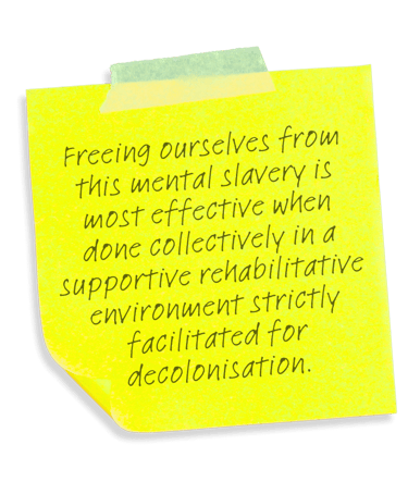 We take ownership of our behaviours, habits and cultures of coloniality. We know deep down that coloniality is causing harms, pains and traumas within ourselves and others around us. And we want to get better.