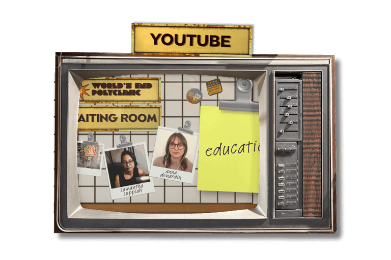 Through the Waiting Room conversations, through the PF podcast Anyway, All The Dogs Are Howling, and through our general knowledge resources. This content forms the core of our programme, and is available for anyone to access.